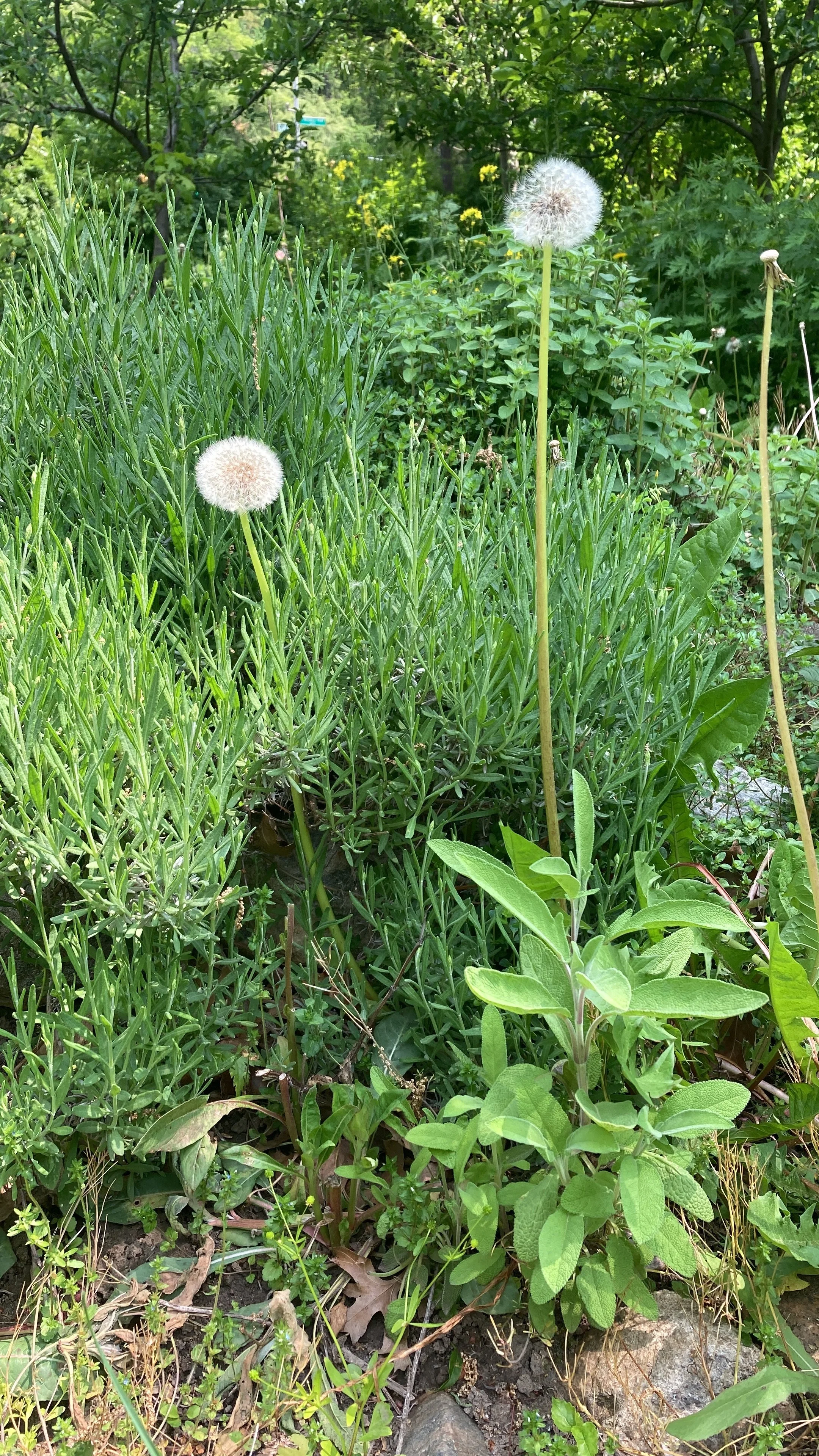 The garden has many young trees and we built gardens around them with the amazing help from volunteers to protect the trees and local flora including mullein & yellow bristly oxtongue (Helminthotheca echioides).