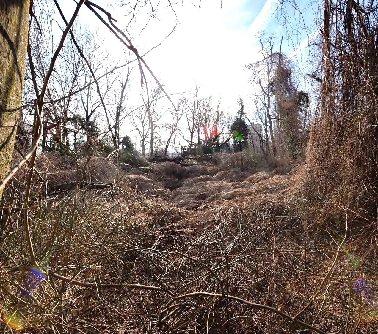 Winter 2022: Invasive vines covering over two acres of the urban forest. (Matthew López-Jensen)