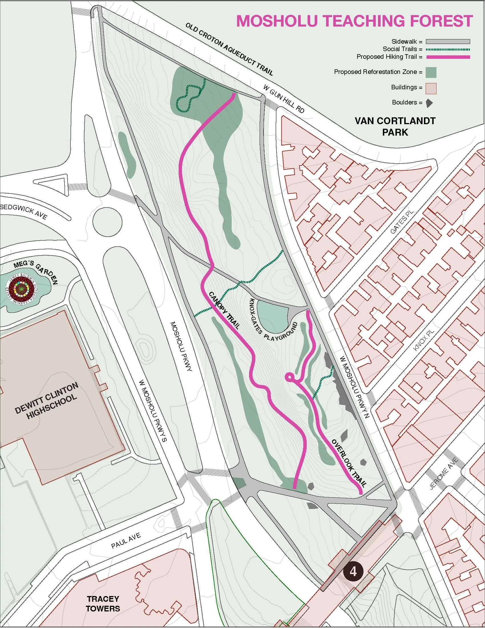 The Mosholu Teaching Forest (MTF) is an emerging stewardship effort led by JBOLC, local artists, educators, and students seeking to increase awareness and access to the 20 acre northernmost urban forest of Mosholu Parkway. There are over 18 schools (pre-K to high school) within walking distance of the forest that could engage with the local ecology through education. By calling this section of public NYC parkland a “teaching forest,” we seek to remind ourselves of how place-based education and land stewardship has something to teach us all.